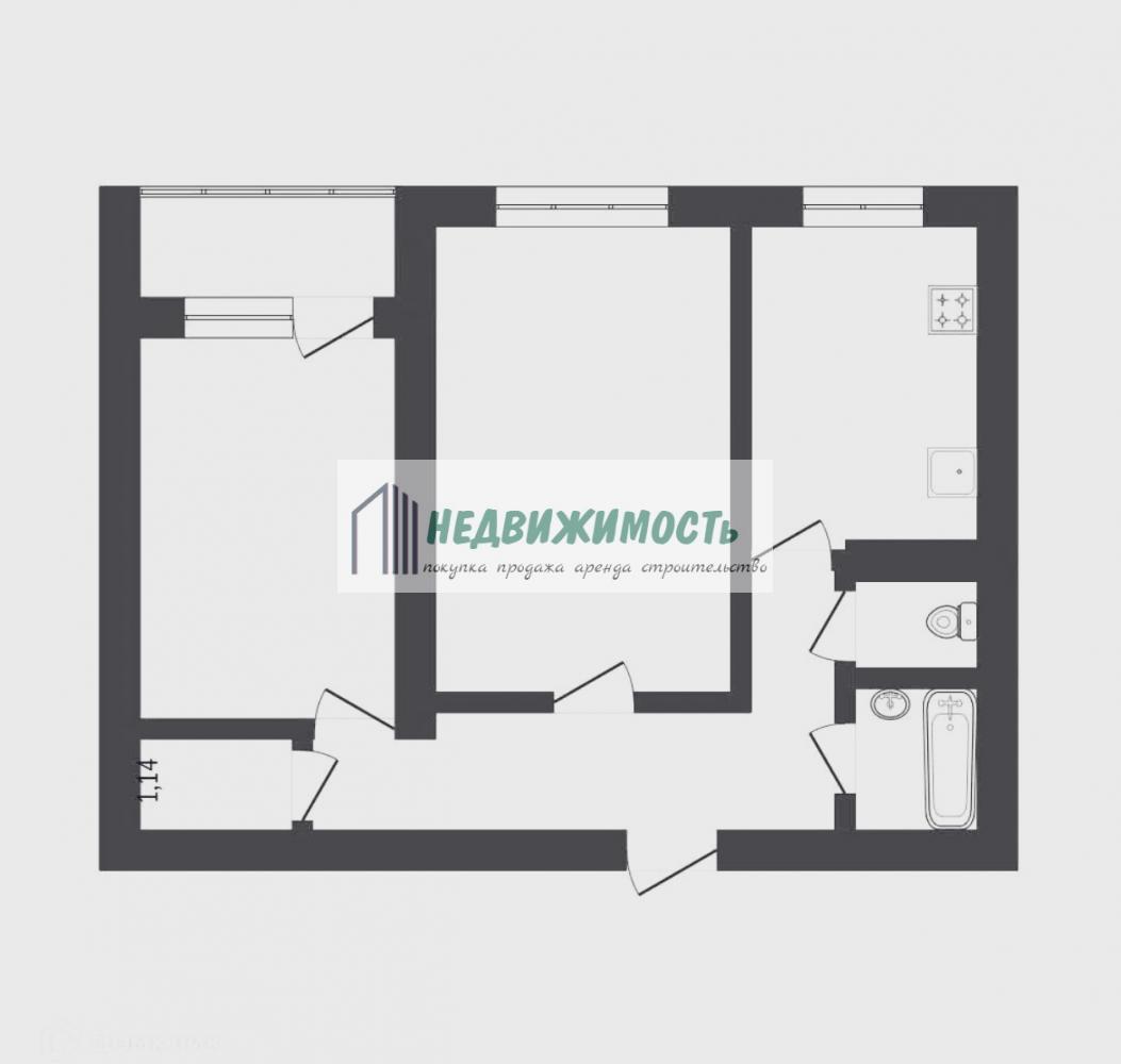 Параметры: общая площадь - 52 кв.м., кухня - 9 кв.м.